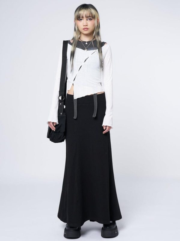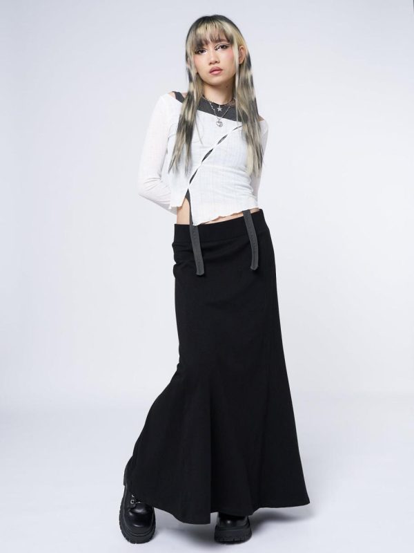 - Lined maxi skirt in black