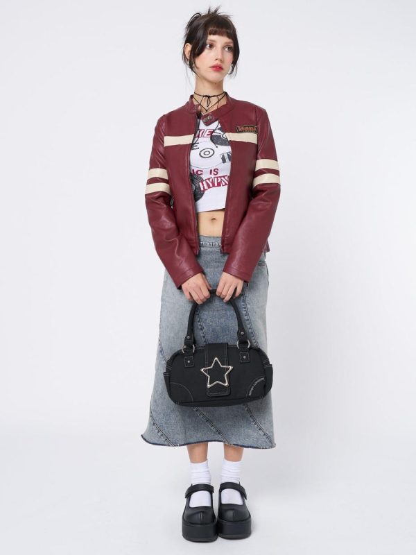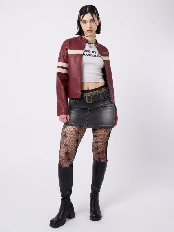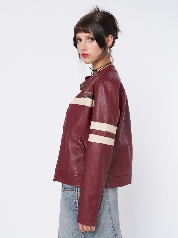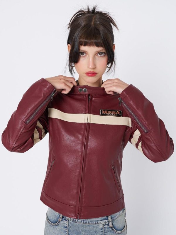 Chiara Red Vegan Racer Jacket | Women Minga London Jackets & Cardigans
