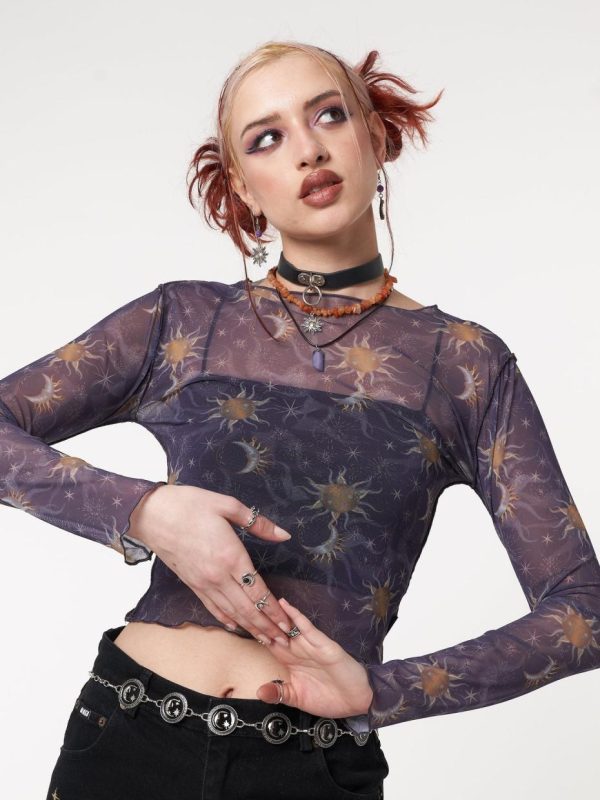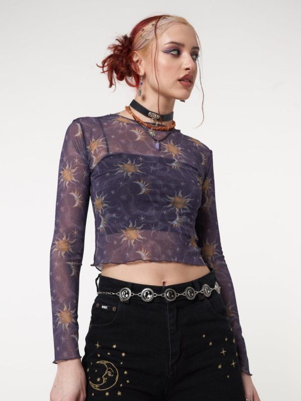 - Printed mesh crop top