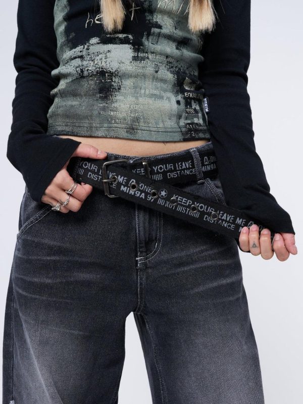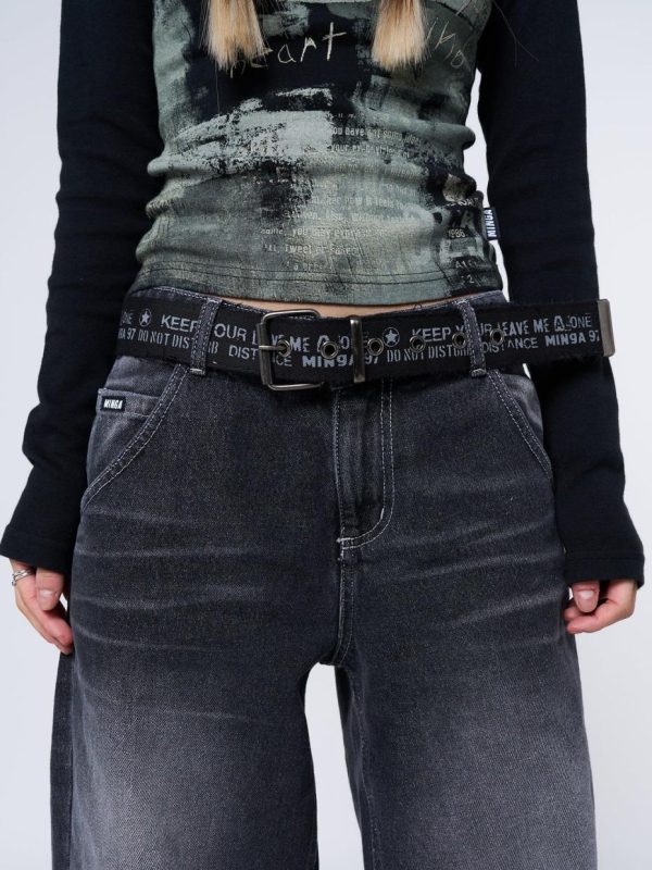 - Distressed canvas belt in black