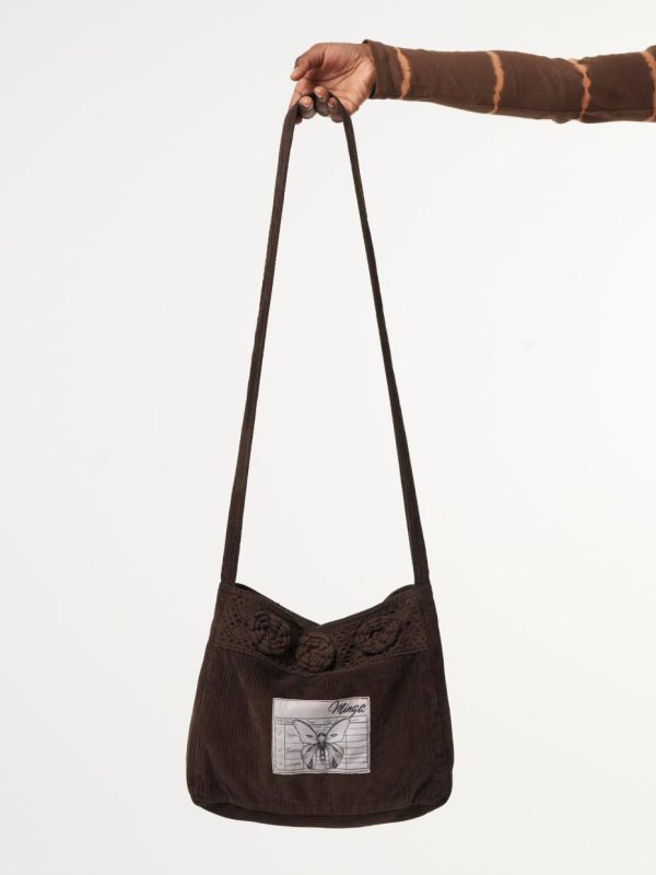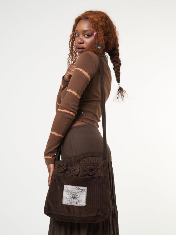 - Corduroy crossbody bag in dark brown