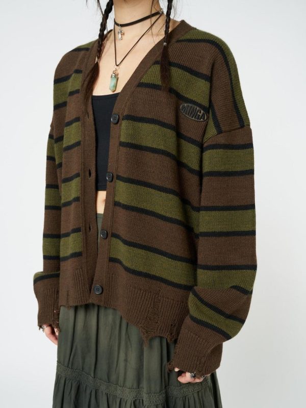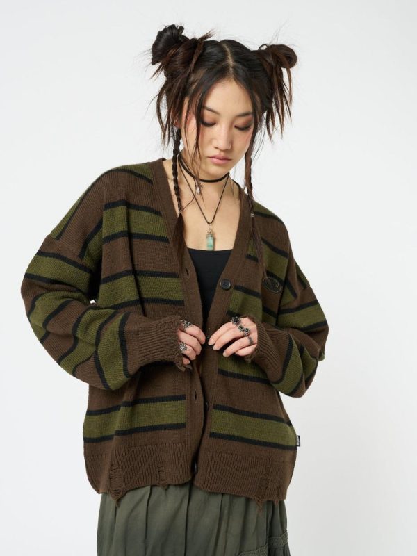Neesa Brown & Green Stripe Knit Cardigan | Women Minga London Jackets & Cardigans