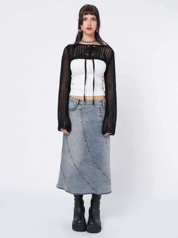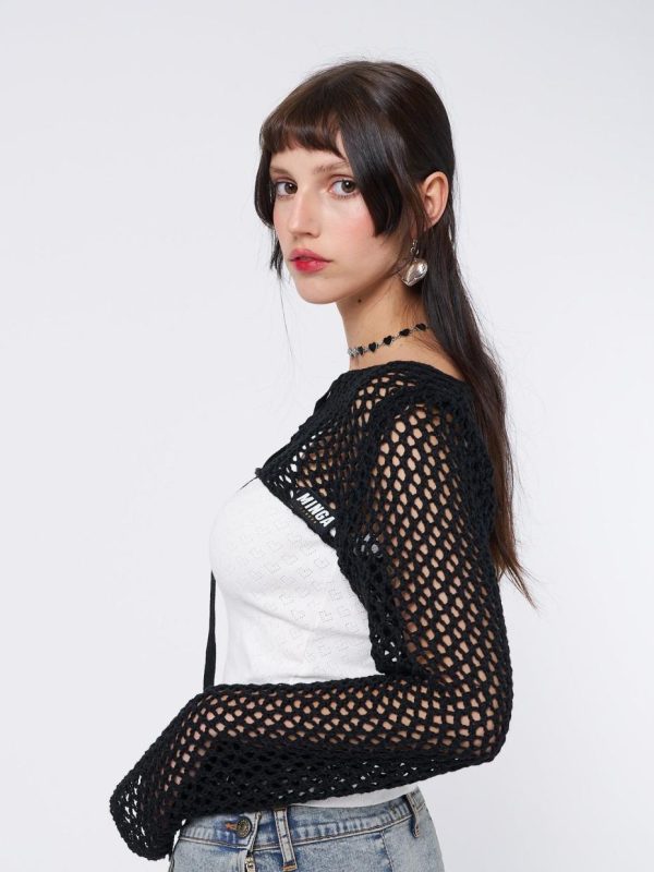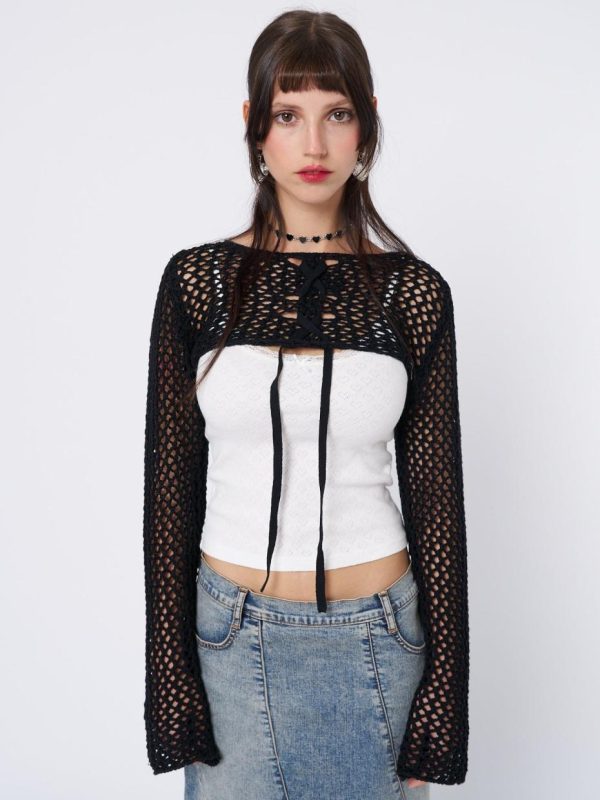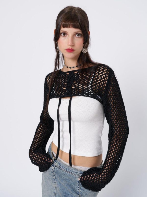 - Lace up knitted shrug in black