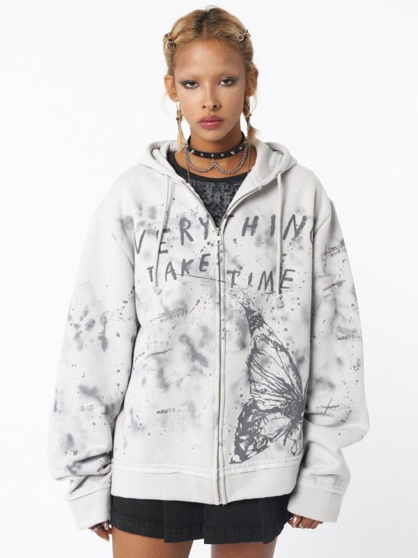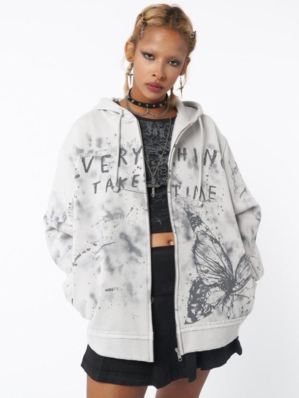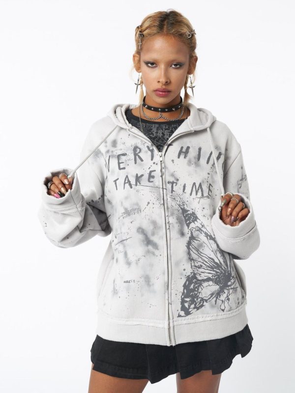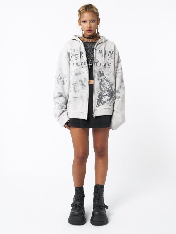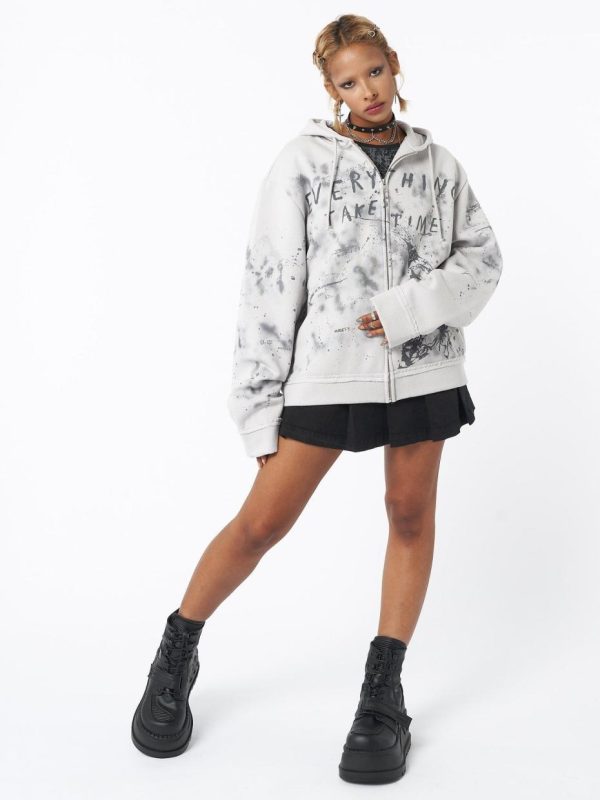 Stained Grey Zip Up Hoodie | Women Minga London Jackets & Cardigans