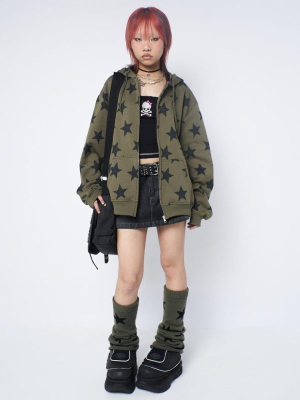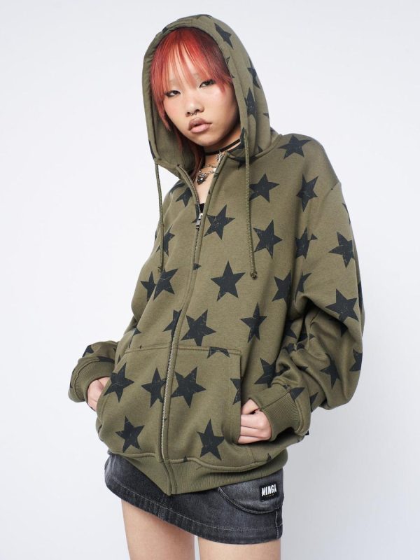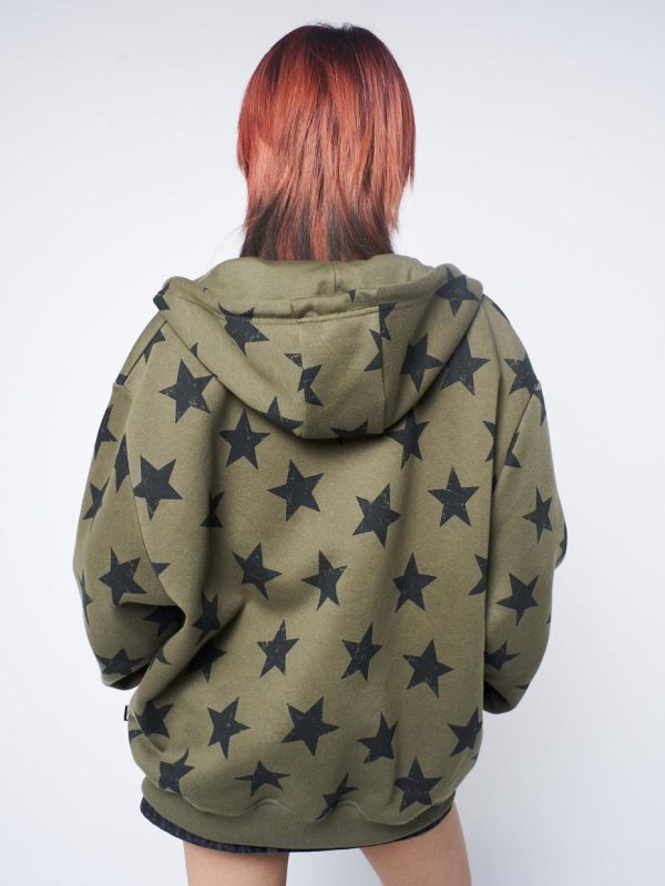 Star Print Green Zip Up Hoodie | Women Minga London Jackets & Cardigans