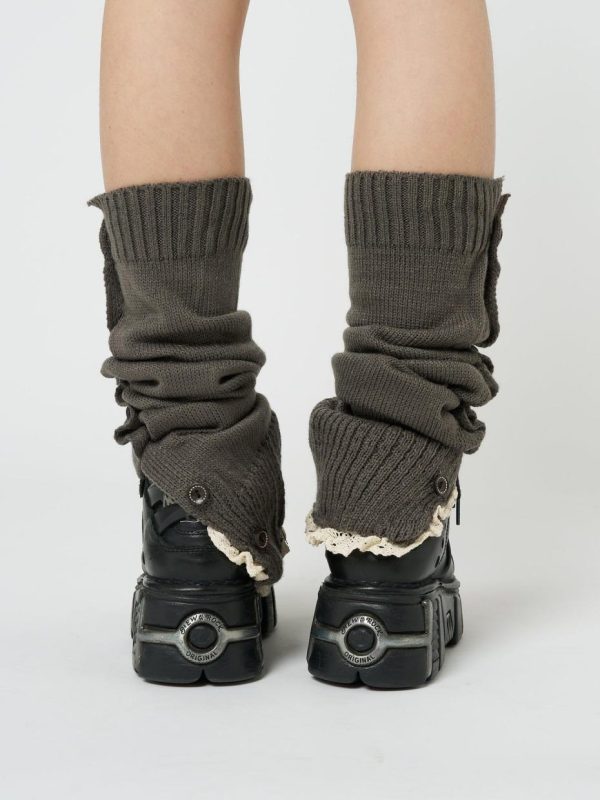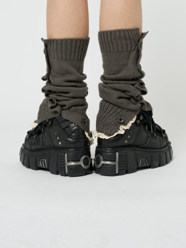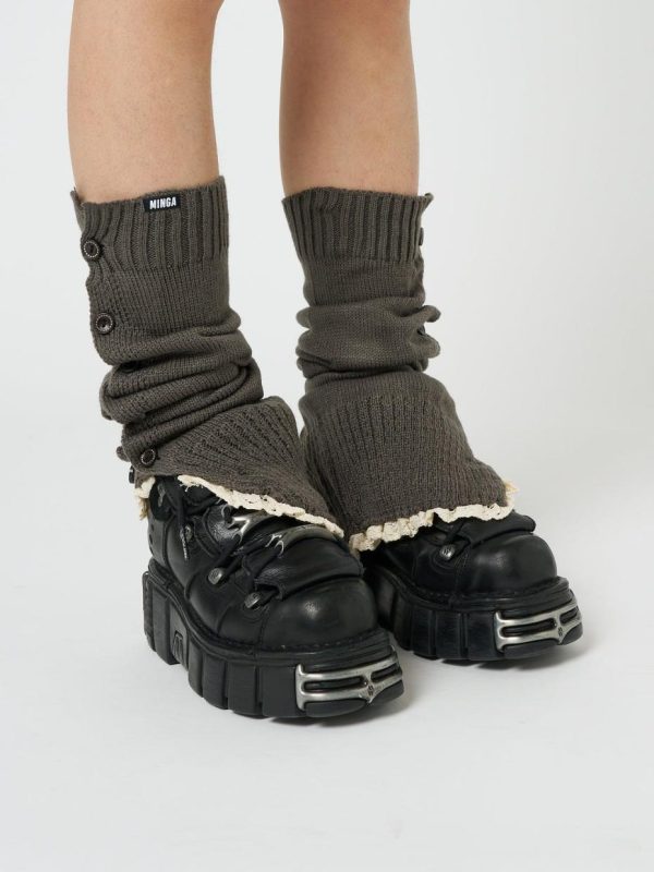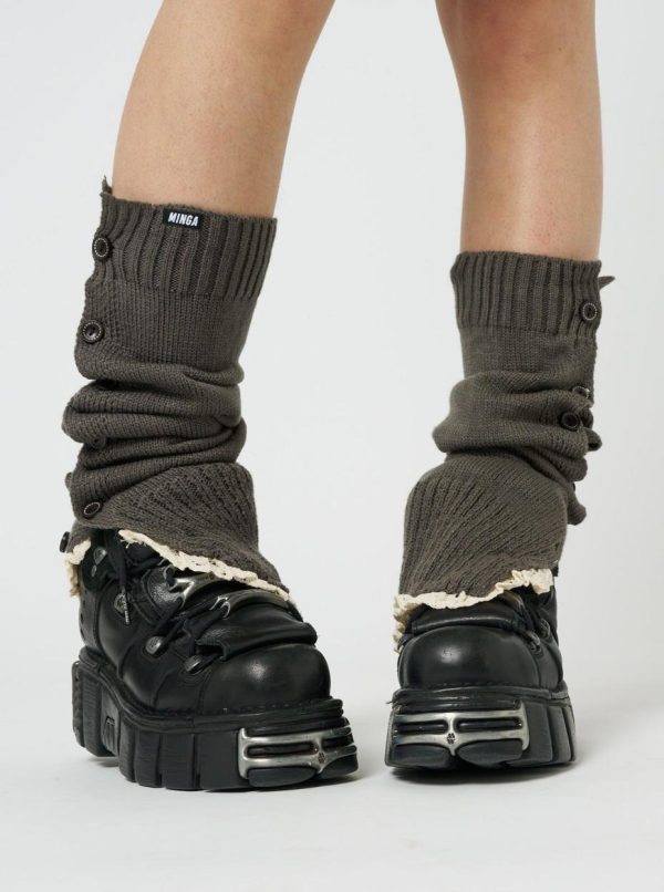 - Knitted buttoned leg warmers in dark grey